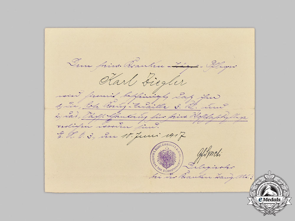Germany, Imperial. Two Documents To First War Volunteer Nurse Karl Ziegler