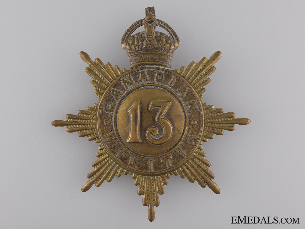 A 13Th Canadian Militia Helmet Plate; King's Crown