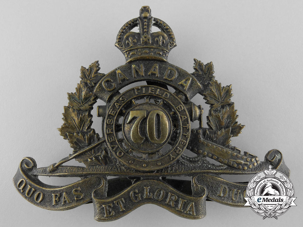 A First War Canadian 70Th Overseas Field Battery Cap Badge