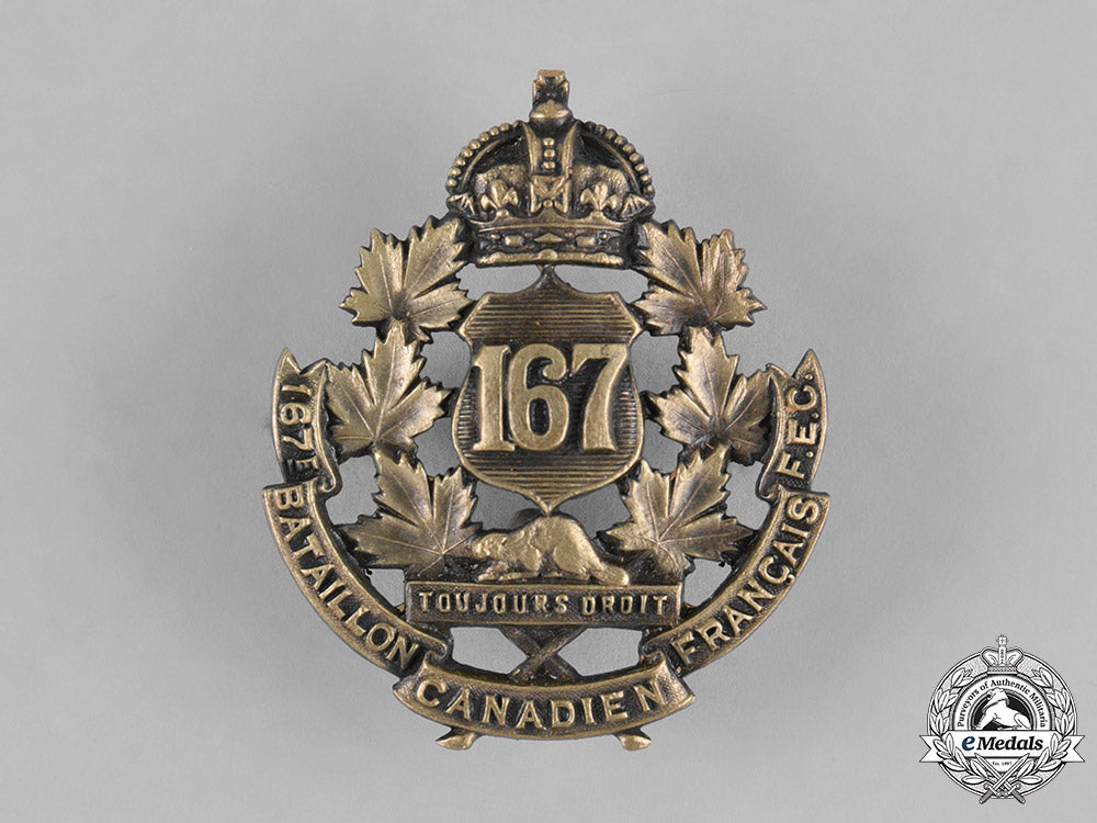 Canada. A 167Th Infantry Battalion "Canadiens Français" Cap Badge, C.1915