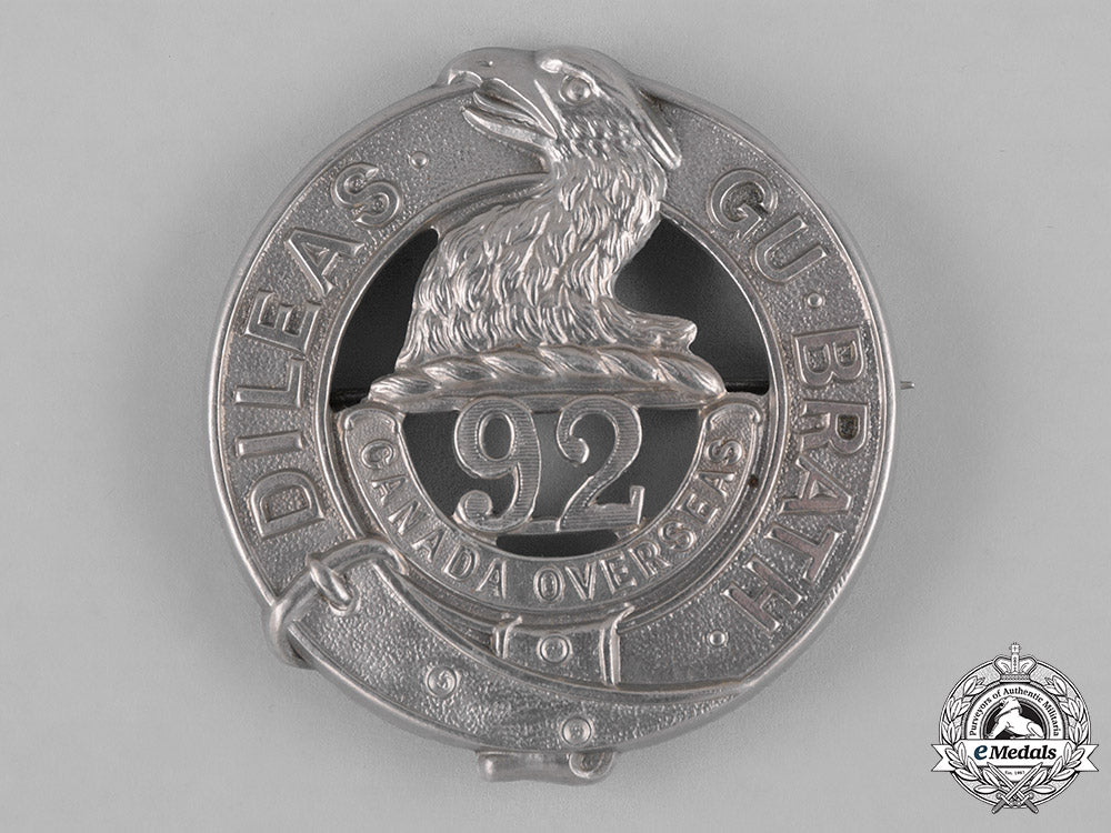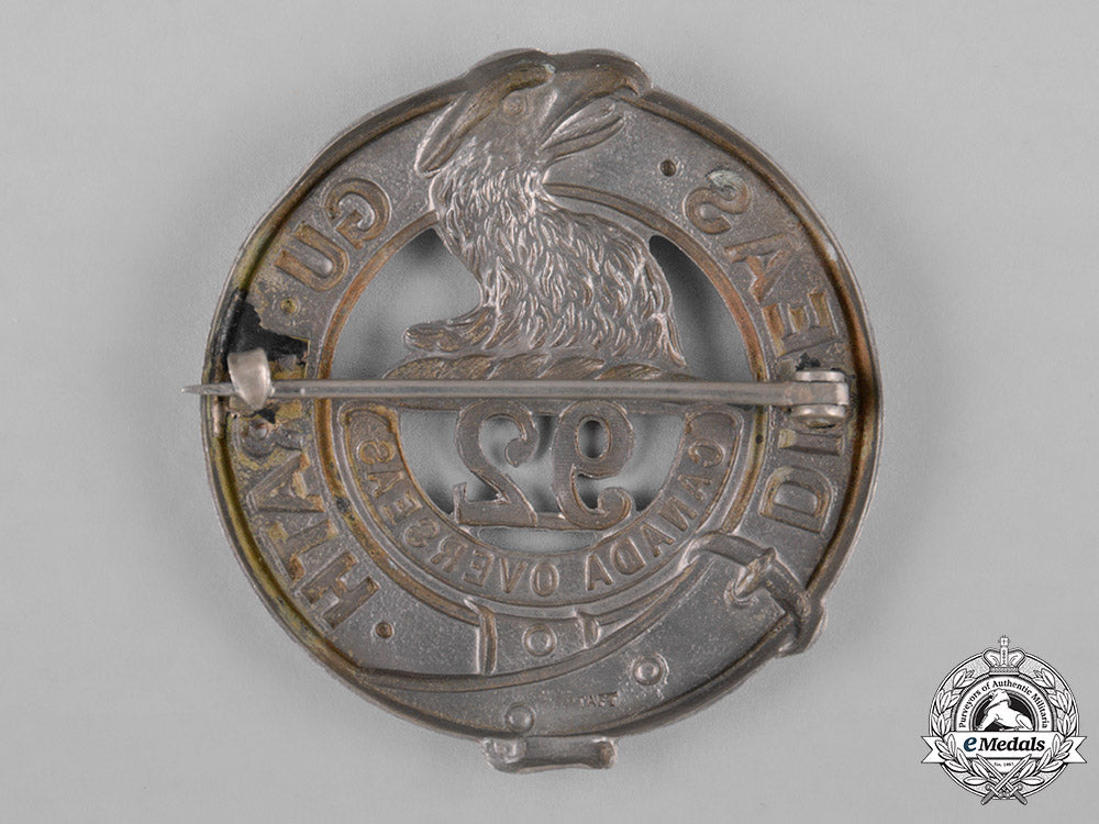 Canada. A 92Nd Infantry Battalion "48Th Highlanders" Glengarry Badge, C.1915
