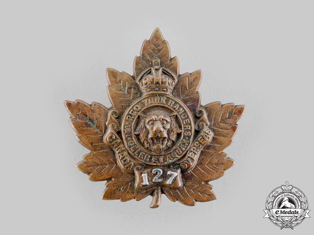 Canada, Cef. A 127Th Infantry Battalion "12Th York Rangers" Officer's Cap Badge, By Birks, C.1916