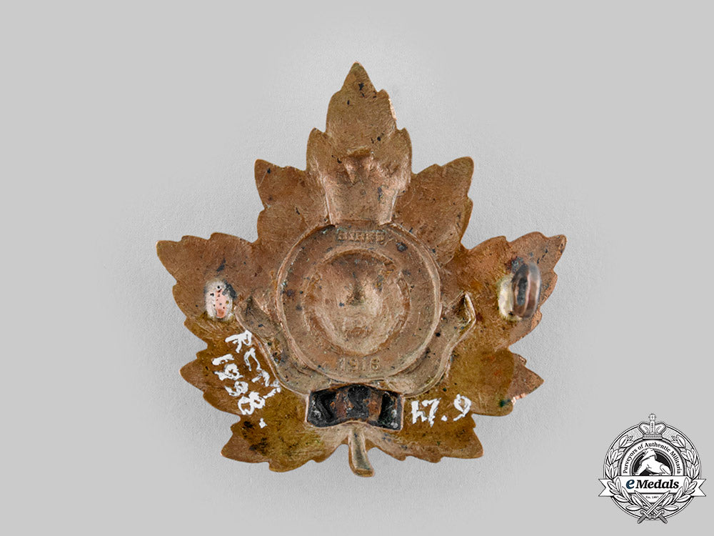 Footnote: The Battalion was raised in the County of York, Ontario with mobilization headquarters at Toronto, under the authority of G.O. 151, December 22, 1915. The Battalion sailed August 24, 1916 under the command of Lieutenant-Colonel F.F. Clarke with a strength of 32 officers and 972 other ranks. On November 8, 1916, the Battalion was re-designated the 2nd Battalion, Canadian Railway Troops and served in France in this capacity. It was disbanded on September 15, 1920.