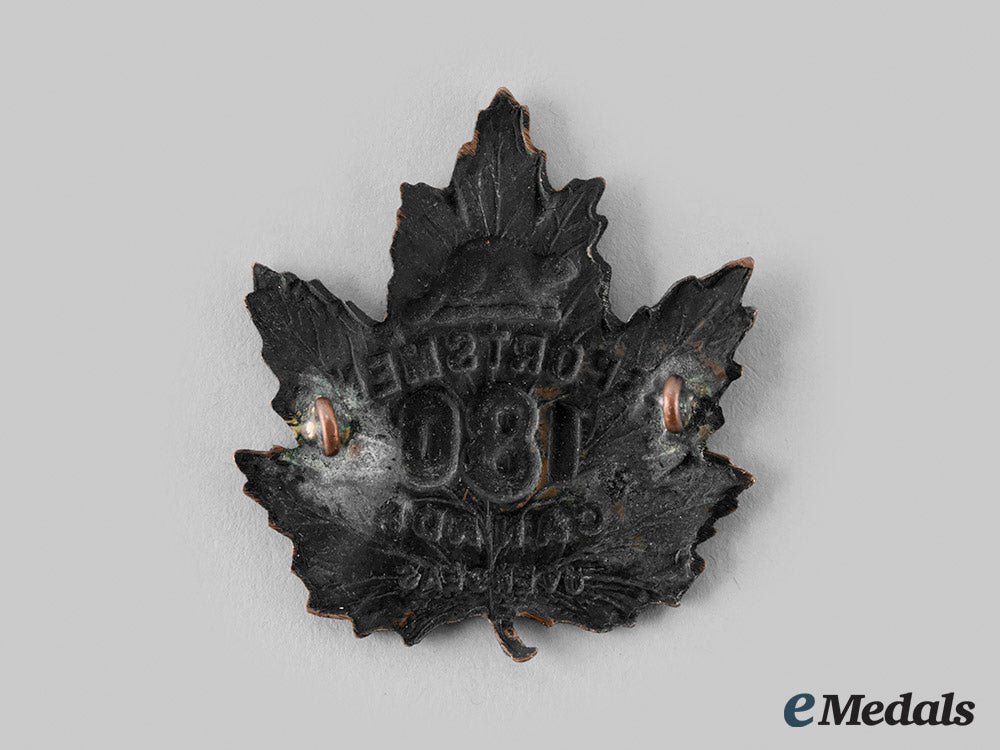 Footnote: The Battalion was raised and mobilized in Toronto, Ontario under the authority of G.O. 69, July 15, 1916. The Battalion sailed November 15, 1916 under the command of Lieutenant-Colonel R.H. Greer with a strength of 31 officers and 833 other ranks. In England, the Battalion was absorbed into the 3rd Reserve Battalion. It was disbanded on September 15, 1920.