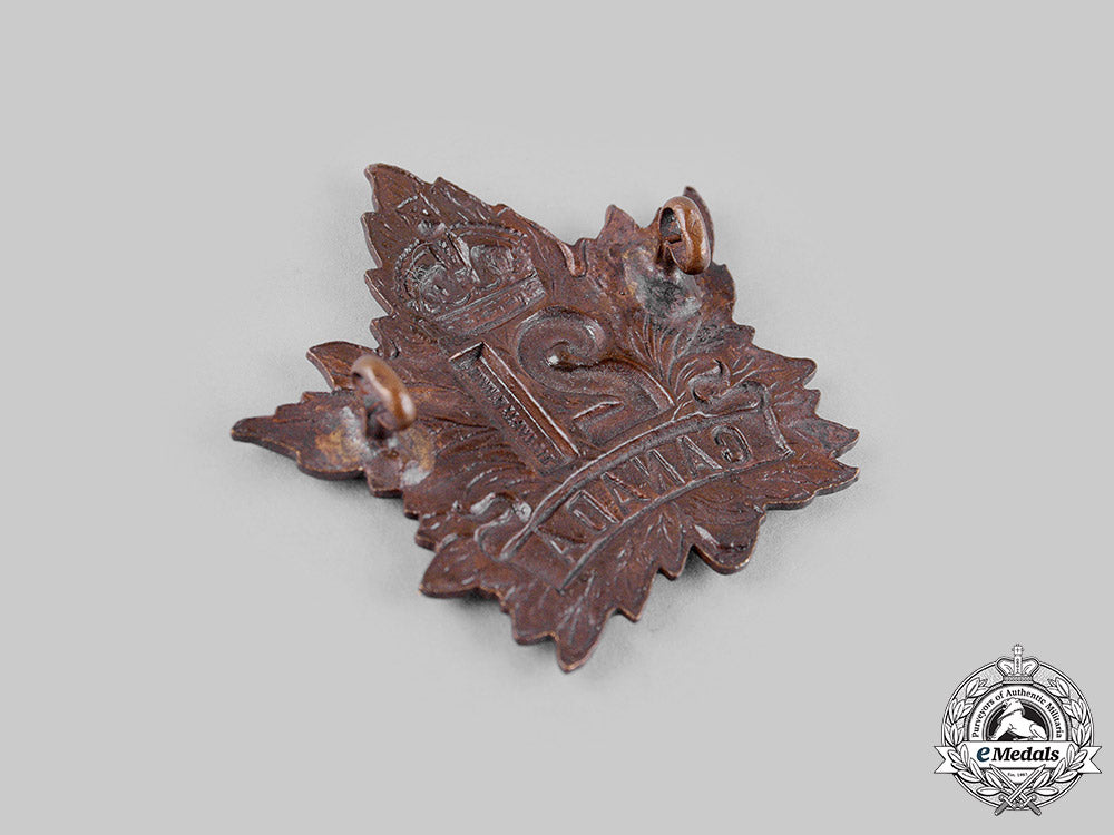 Footnote: The Battalion was raised in Eastern Ontario and mobilized in Kingston, Ontario under the authority of G.O. 36, March 15, 1915. The Battalion sailed May 4, 1915 with a strength of 42 officers and 1,057 other ranks under the command of Lieutenant-Colonel W. St. P. Hughes. The Battalion served in France and Belgium with the 4th Infantry Brigade, 2nd Canadian Division. It was disbanded on September 15, 1920.