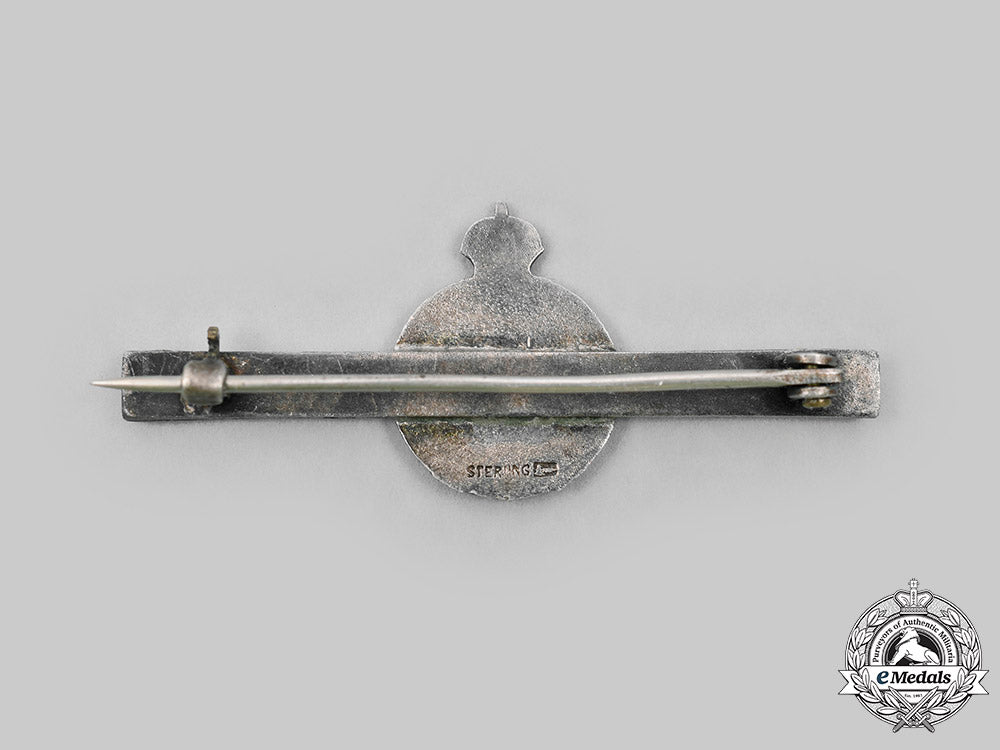 In sterling silver, marked "STERLING" and hallmarked with an axe on the reverse, insignia measuring 14.5 mm (w) x 19 mm (h), mounted to a 48.8 mm (w) x 4.5 mm (h) sterling silver tie clip with pinback, extremely fine.
