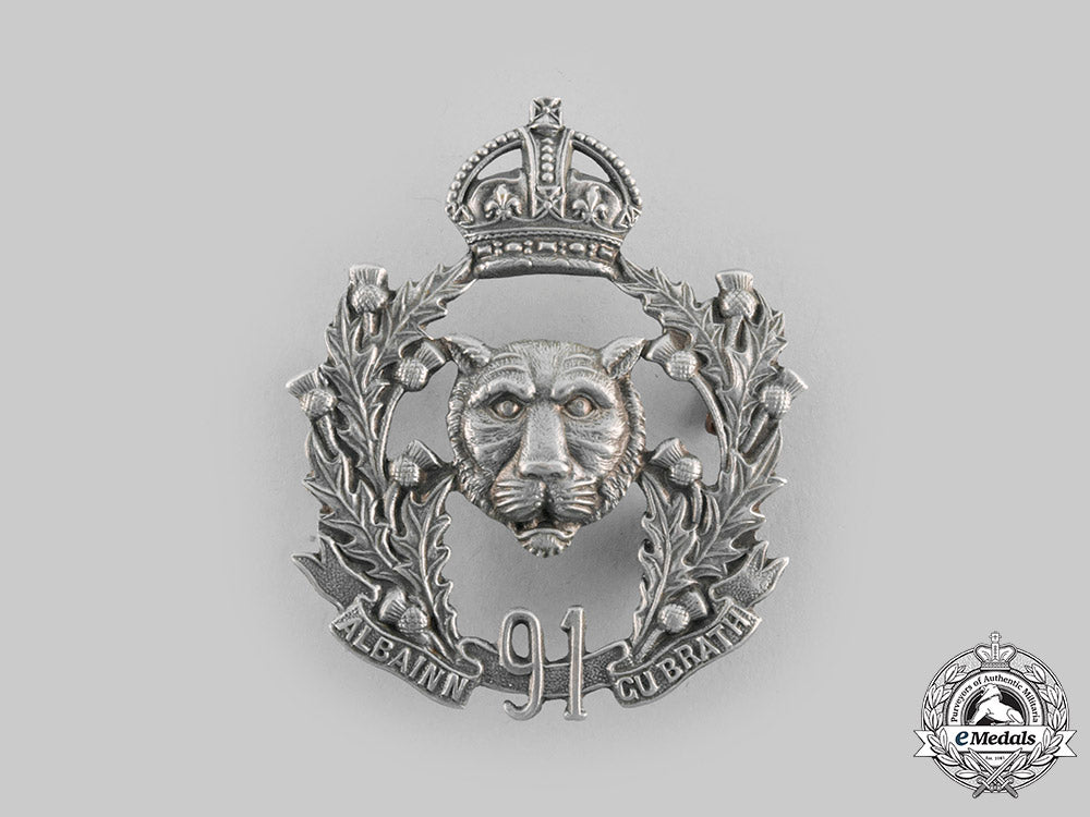 Canada, Dominion. A Pre-First War 91St Regiment Canadian Highlanders Cap Badge