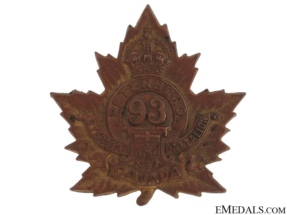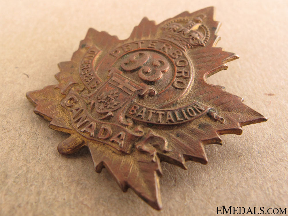 Wwi 93Rd Infantry Battalion "Peterborough Battalion" Cap Badge