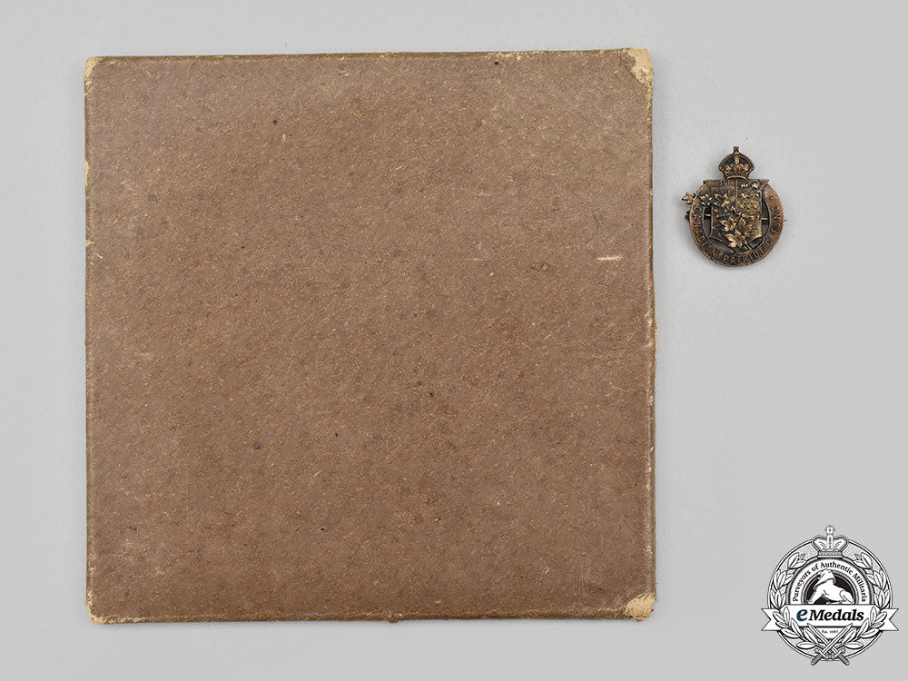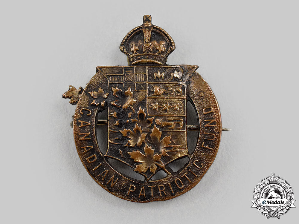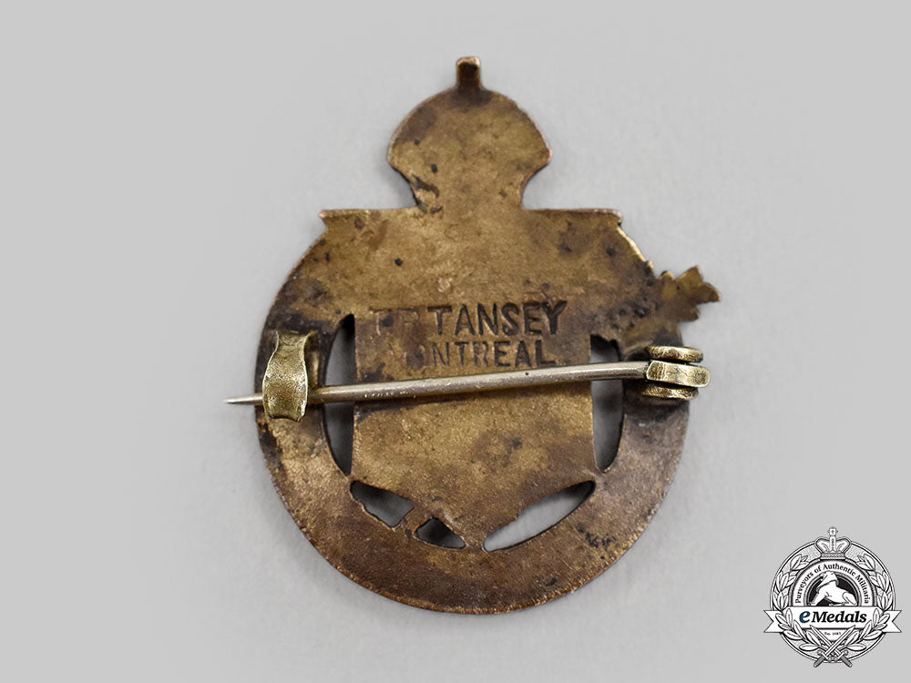 Accompanied by a rare First War Canadian Expeditionary Forces Patriotic Fund Pin in bronze, maker marked "T.P. TANSEY MONTREAL" on the reverse, measuring 23.2 mm (w) x 27.7 mm (h), with horizontal pinback, along with assorted research papers.