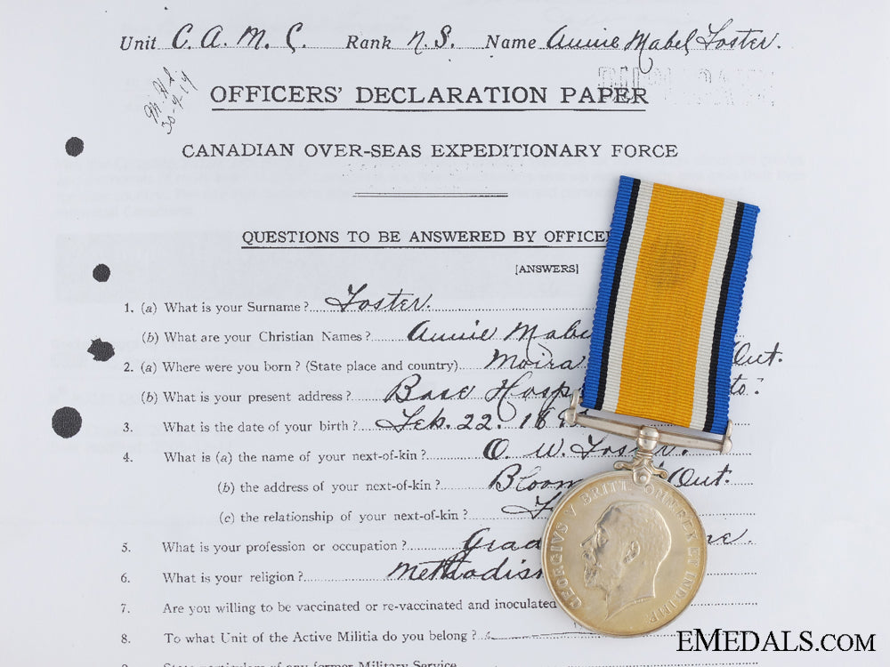 A British War Medal 1914-18 To Nursing Sister Foster; C.a.m.c.