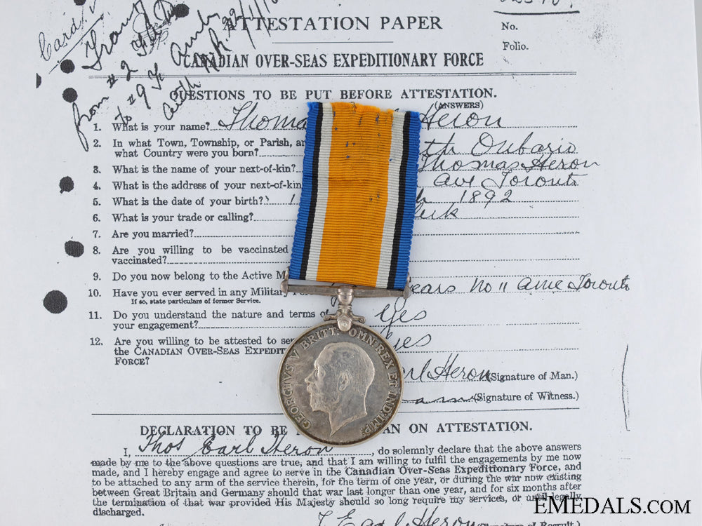 A Canadian War Medal To Captain Heron; 9Th Field Ambulance