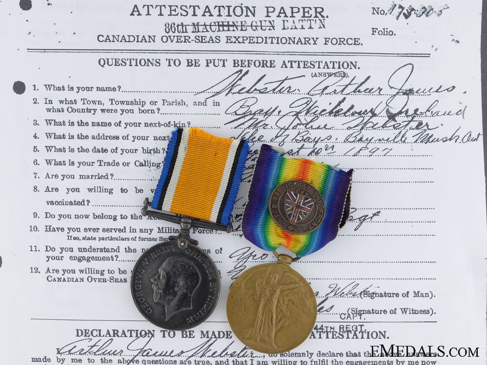 A First War Pair To The Canadian Machine Gun Brigade Cef