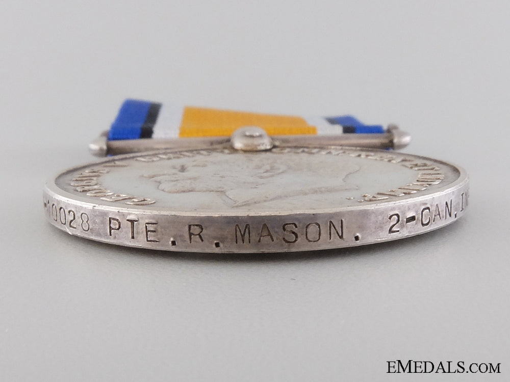 A Wwi British War Medal To The 2Nd Canadian Infantry; Kia