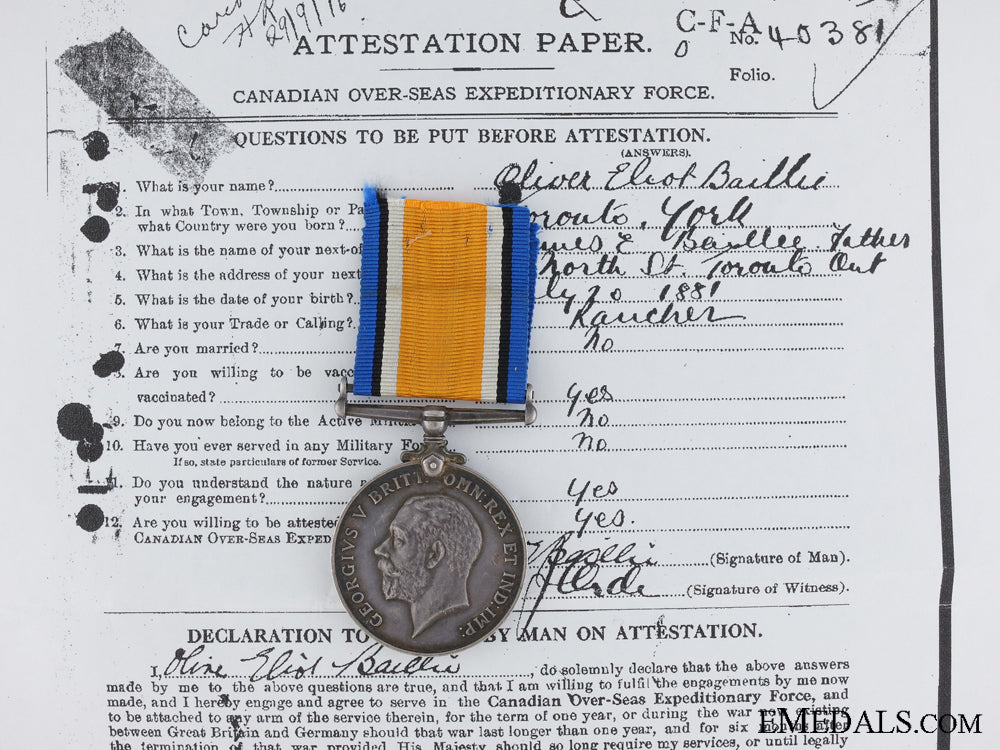 A Wwi War Medal To 2Nd Lieut. Baillie 1St Brigade C.f.a.