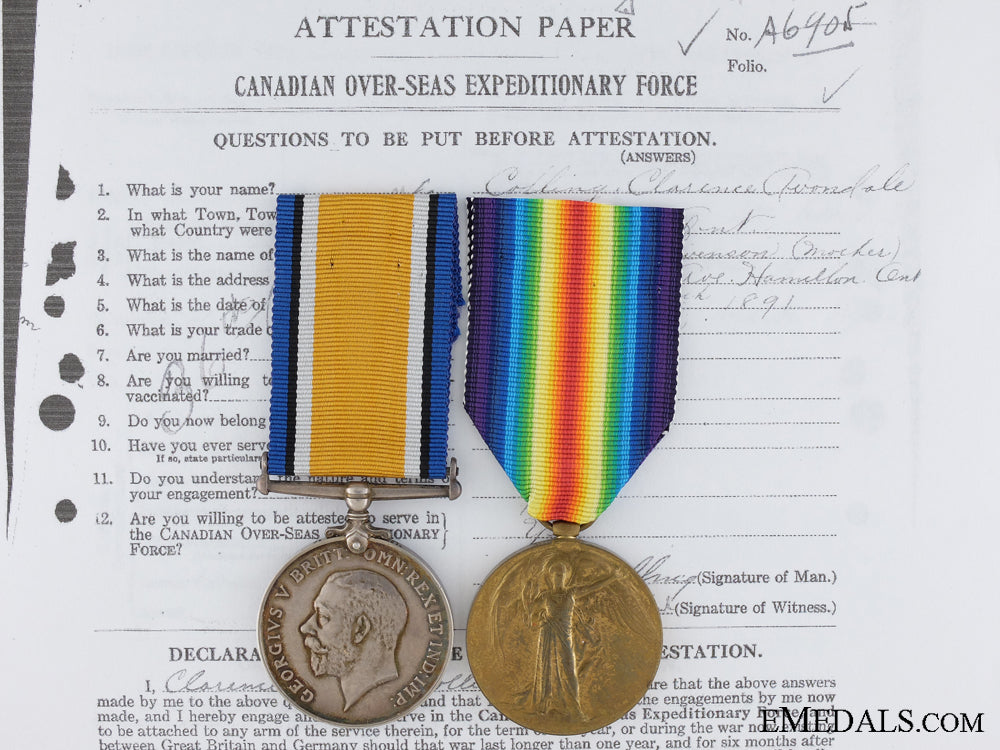 Canada. A First War Medal Pair To The 5Th Canadian Mounted Rifles Kia