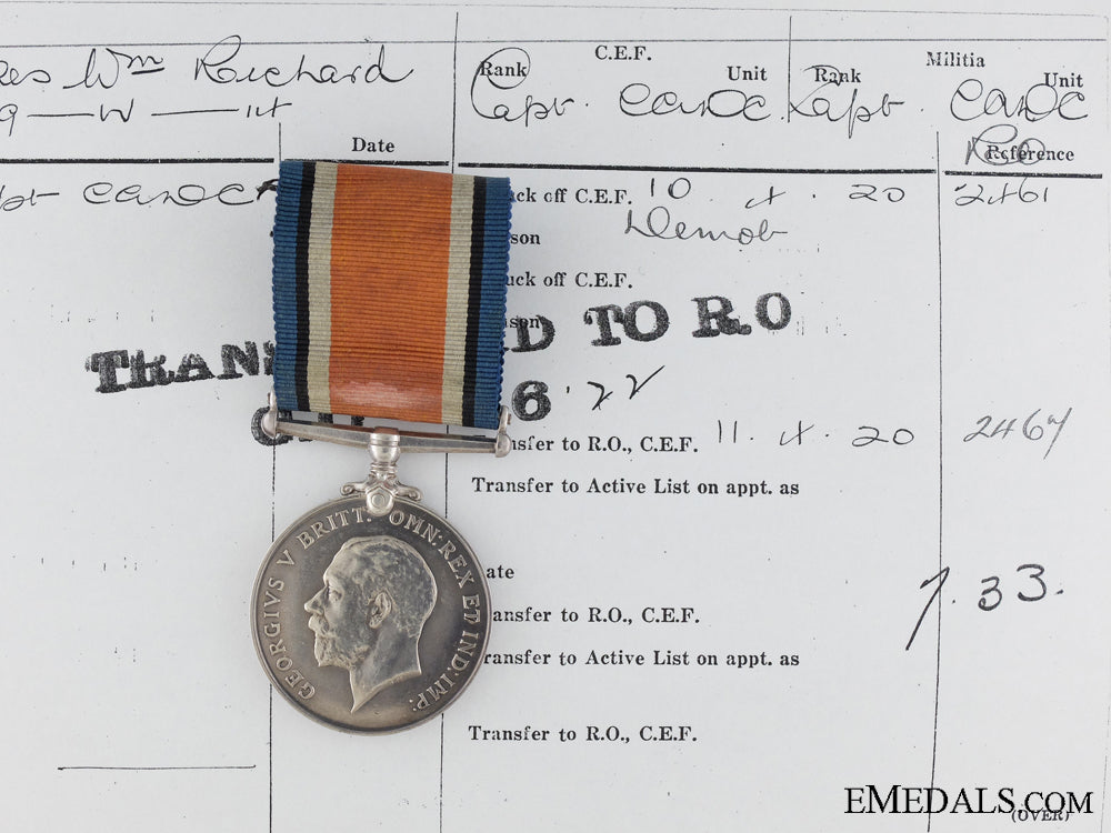 Wwi British War Medal To Captain Wilkes; Canadian Army Dental Corps