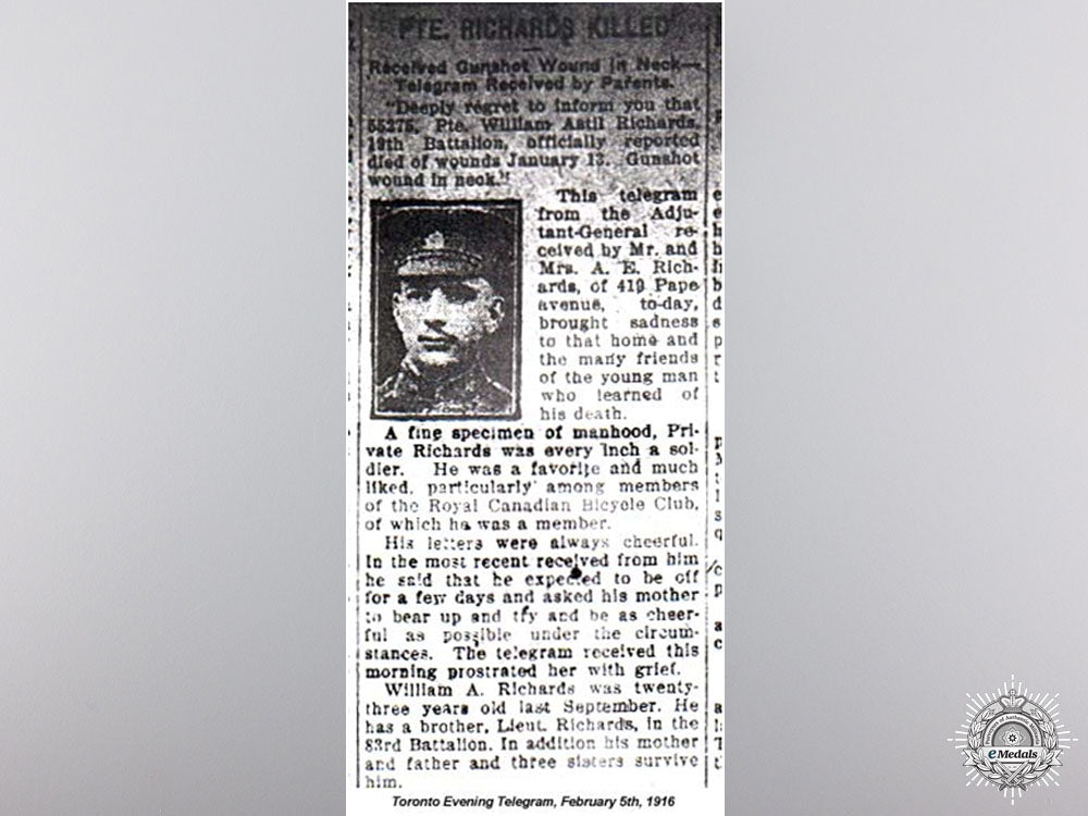 Wwi Memorial Cross To The 19Th Battalion Cef 1916