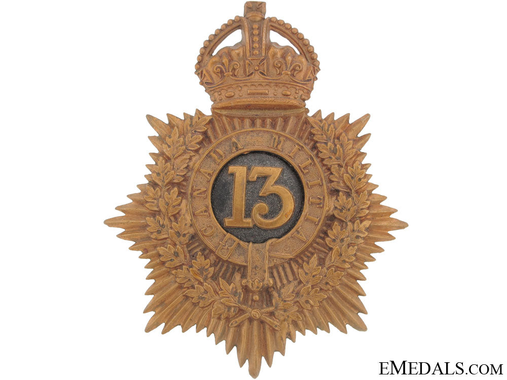 13Th Canadian Regiment Of Militia (Hamilton, Ont) Helmet Plate