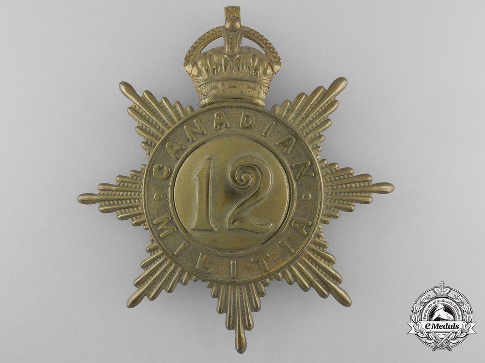 A 12Th York Rangers Canadian Militia Helmet Plate C. 1908