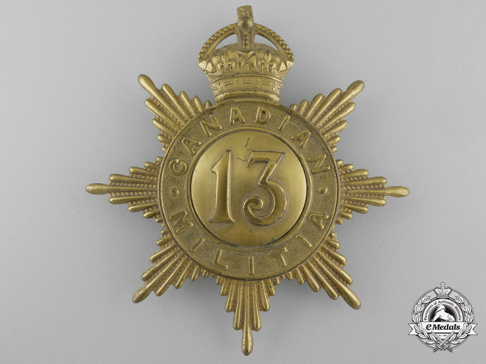A 13Th Regiment (Later Royal Hamilton Regiment) Canadian Militia Helmet Plate C. 1908