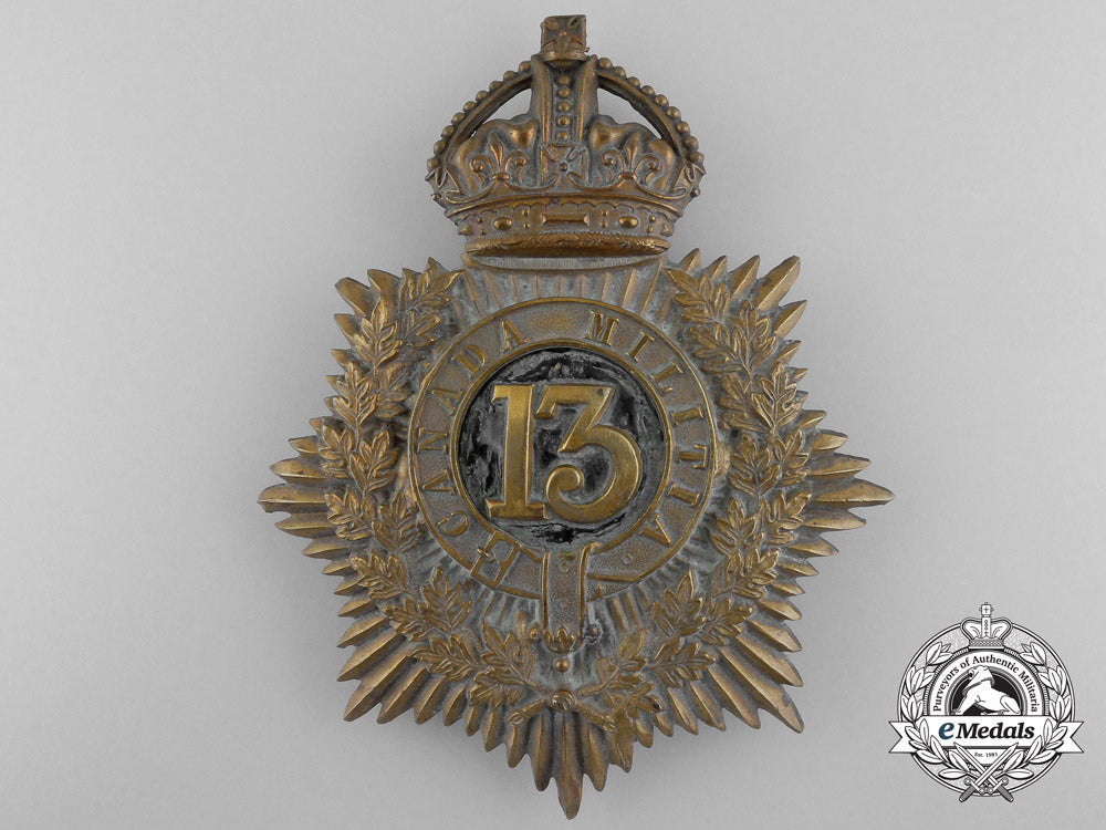 A 1904 Pattern 13Th Canadian Militia Helmet Plate