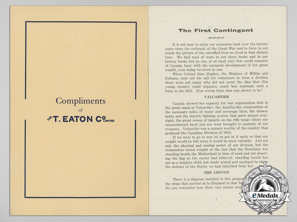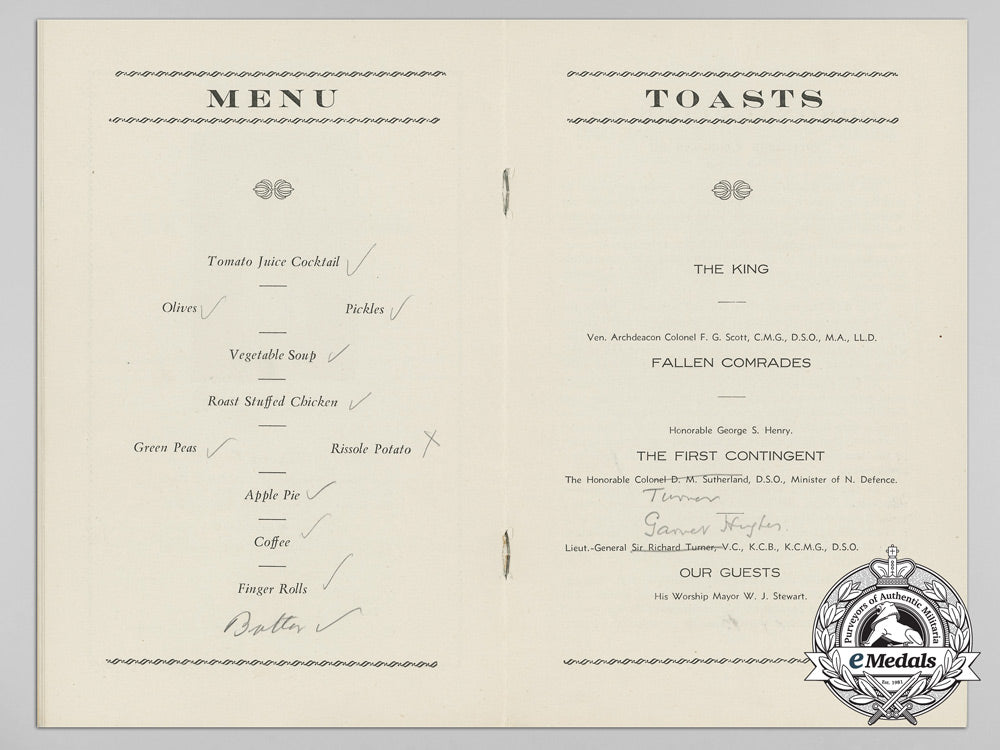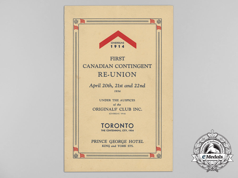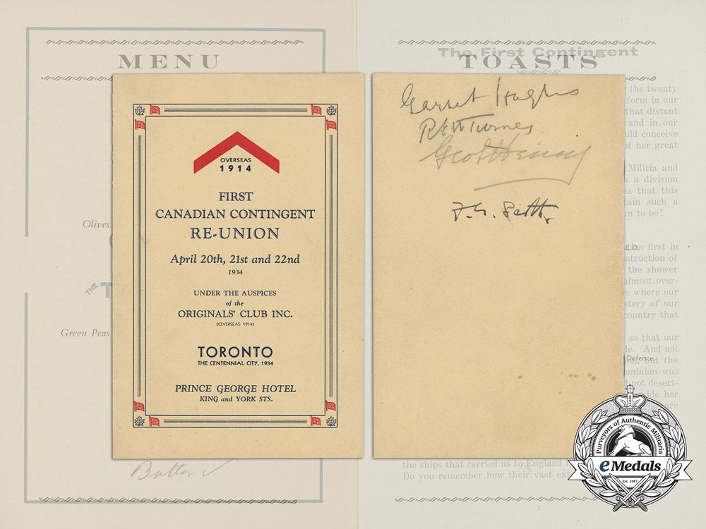 A 1934 First Canadian Contingent Re-Union Programme; Notable Signatures