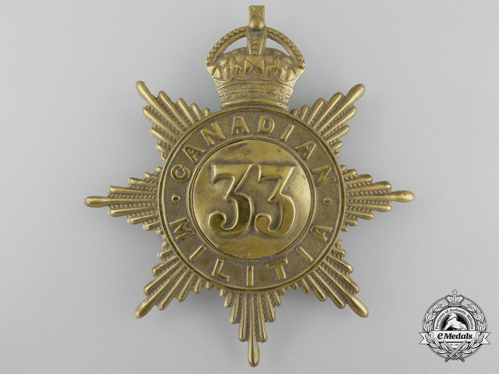 A 33Rd Huron Regiment Canadian Militia Helmet Plate C. 1908