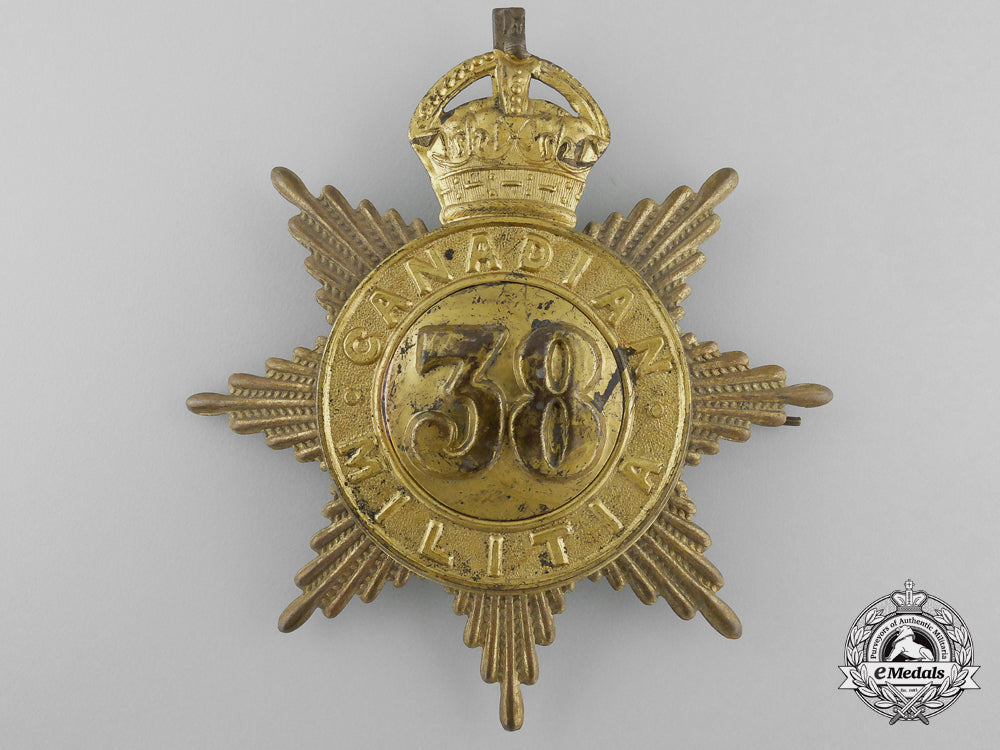 A 38Th Regiment (Dufferin Rifles Of Canada) Canadian Militia Helmet Plate C. 1908