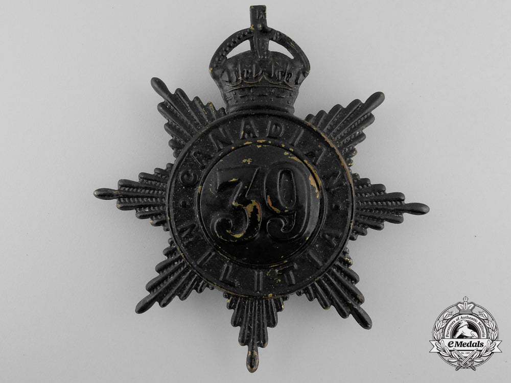 A 39Th Regiment (Norfolk Rifles) Canadian Militia Helmet Plate C. 1908