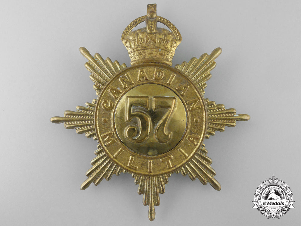 A 57Th Regiment (Peterborough Rangers) Canadian Militia Helmet Plate C1908
