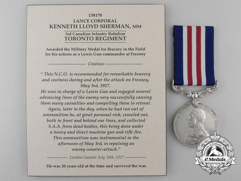 A Canadian Military Medal For Lewis Gun Action At Fresnoy 1917