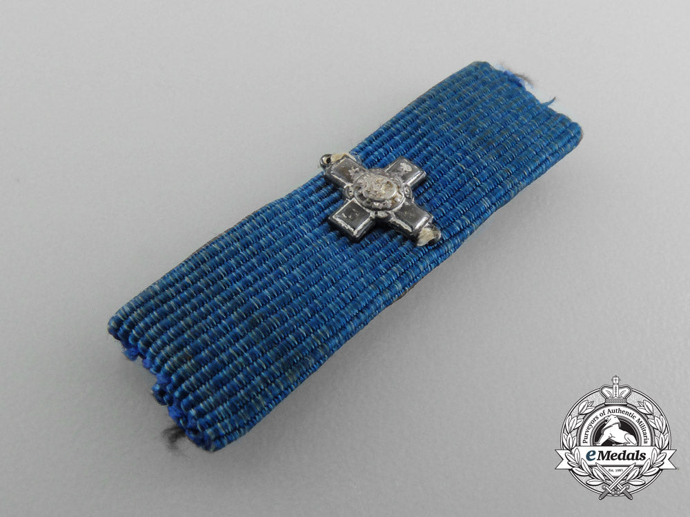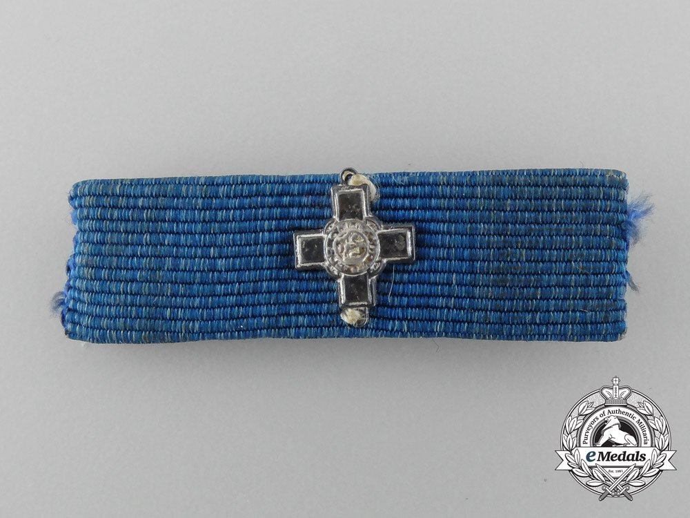 Canada. George Cross Ribbon Bar Attributed to Dr. Arthur Richard "Dick" Cecil Butson AM/GC, OMM, CD*, CStJ : Frosted silver 8 mm x 10.5 mm miniature George Cross sewn in place, on an original 10.7 mm x 36.5 mm ribbon bar, with safety pin attachment, scattered frosting wear on the cross, near extremely fine. Accompanied by a Letterhead for Dr. A.R.C. Butson (inscribed "A.R.C. BUTSON, G.C., M.D., F.R.C.S. (ENG.), F.R.C.S. (C) / SUITE 804, 25 CHARLTON AVE. E. / HAMILTON 20, ONTARIO" and "TELEPHONE 528-8911", handwritten inscription in blue ink "This is the original ribbon from my George Cross" and signed by "A R C Butson", 216 mm x 280 mm, fold marks, slightly soiled); a booklet entitled "A History of The Medical Units of Hamilton, Ontario In Peace and War 1900-1990", authored "by A.R.C. Butson, GC, OMM, CD", cover in a dark beige card stock, forty-four pages printed in black ink on a white papers stock, 137 mm x 216 mm, dual-staple bound); and five articles from the Hamilton Spectator.