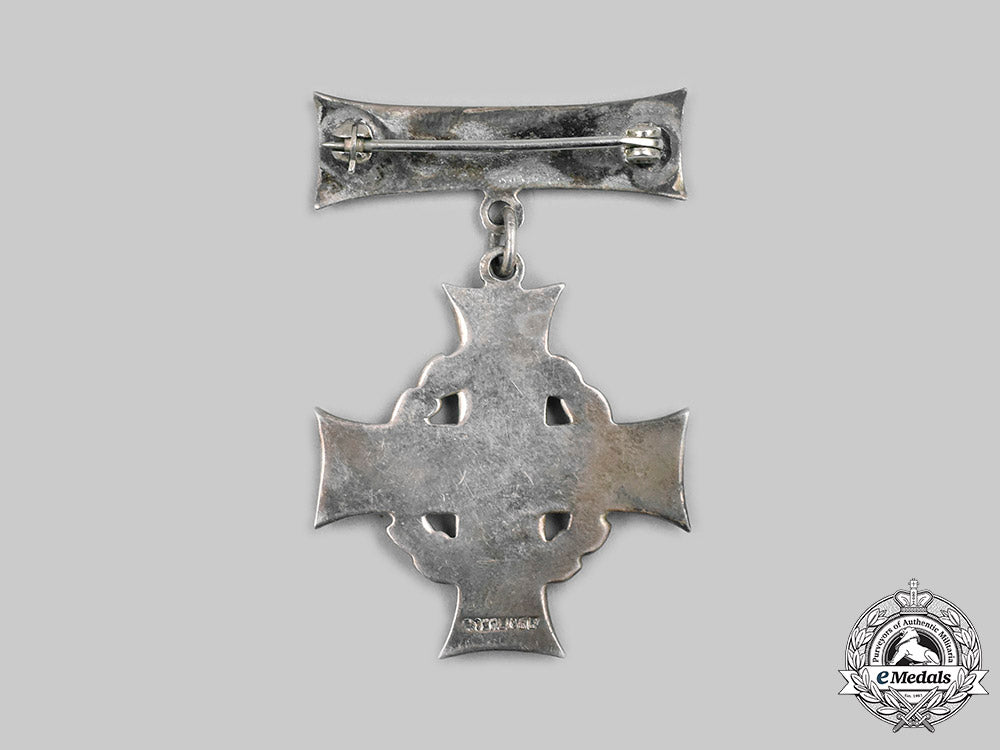 Footnote: The Memorial Cross (more often referred to as the Silver Cross) was first instituted by Order-in-Council 2374, dated December 1, 1919. It was awarded to mothers and widows (next-of-kin) of Canadian soldiers who died on active duty or whose death was consequently attributed to such duty. The crosses were sent automatically to mothers and wives who qualified, and could be worn by the recipients anytime, even though they were not themselves veterans. The cross was engraved with the name, rank and service number of the son or husband. Recent changes now allow Canadian Forces members to designate up to three Memorial Cross recipients.