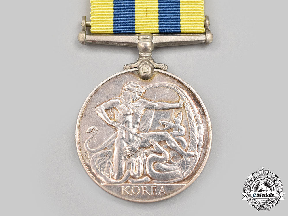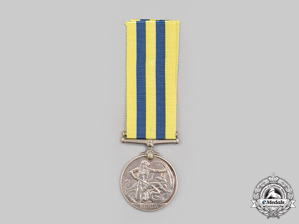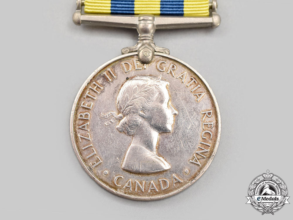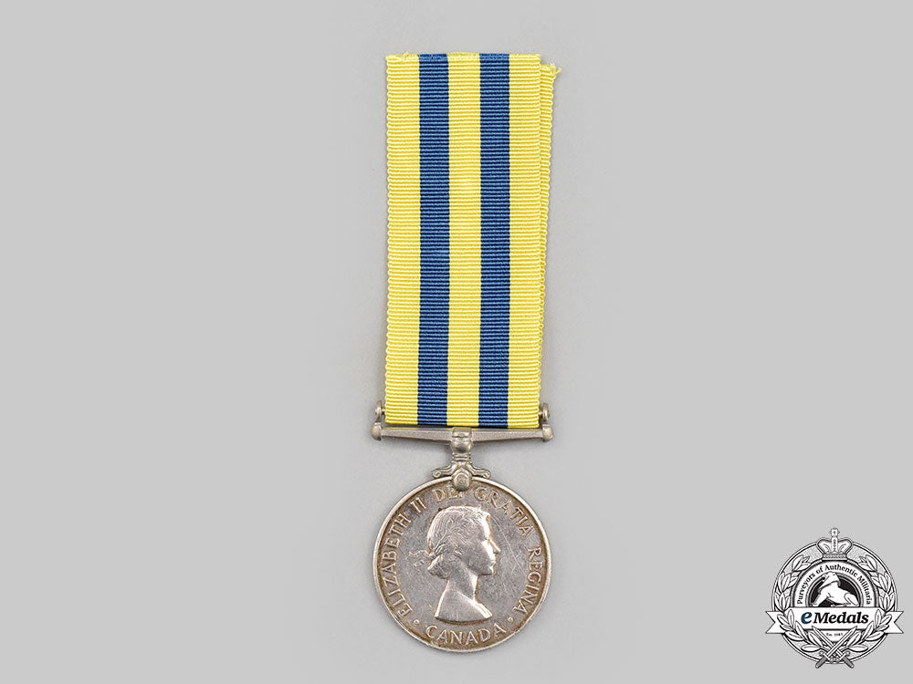 Footnote: The Canadian Korea Medal was instituted in 1951 for service from July 2, 1950 to July 27, 1953. It was awarded to Canadian military personnel for one day on the strength of an army unit in Korea, or 28 days afloat, or one sortie over Korea by a member of the RCAF.