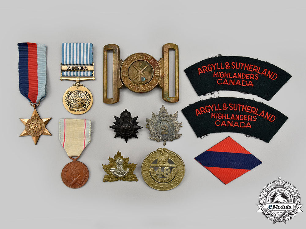 10. United Nations Service Medal for Korea: in bronze gilt, measuring 36.5 mm in diameter, original ribbon with pinback.