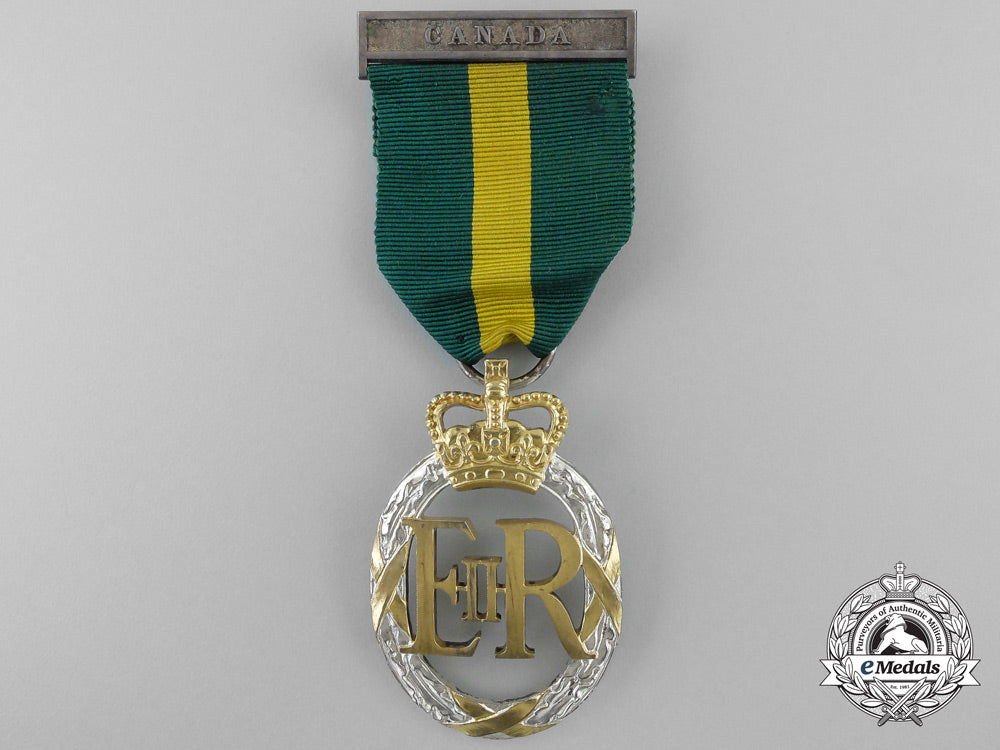 ERII with Canada suspension bar (MAJOR H. DENIS-NATHAN.). Naming is officially impressed on the reverse. Original ribbon, scattered gilt wear, light contact, better than very fine.