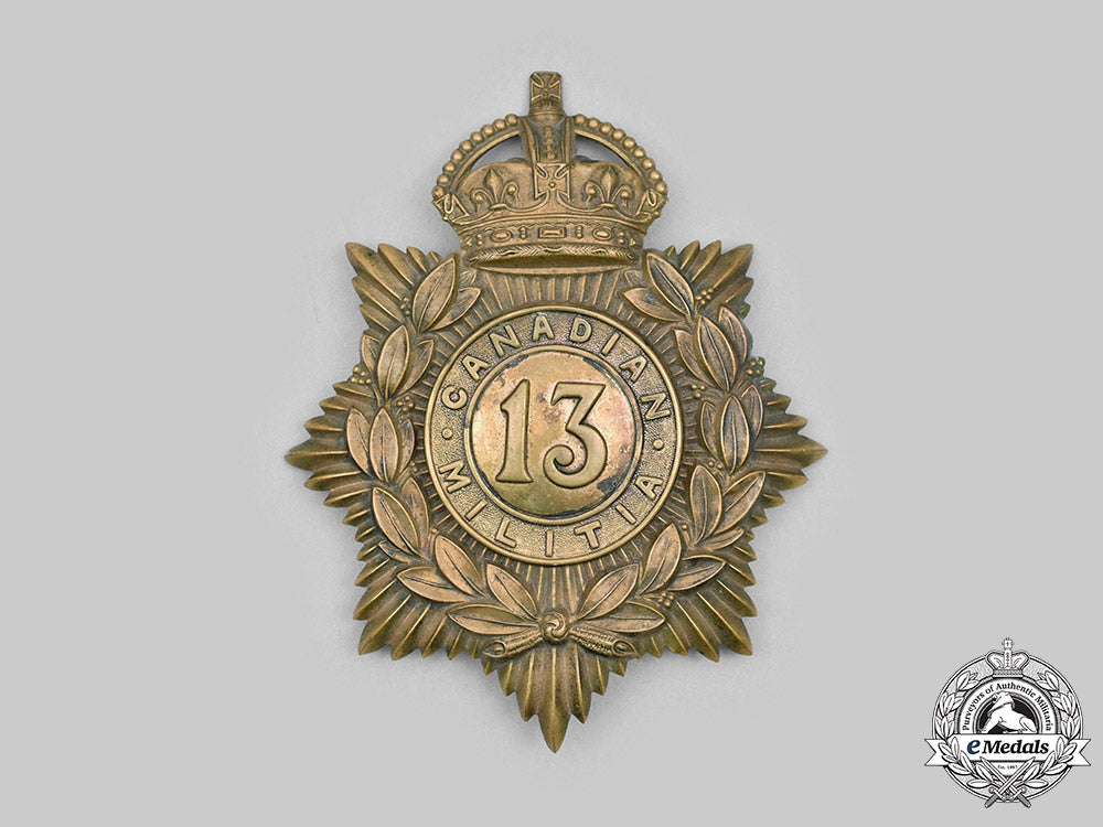 Canada. British-Made Pre-First War 13Th Regiment Canadian Militia Helmet Plate