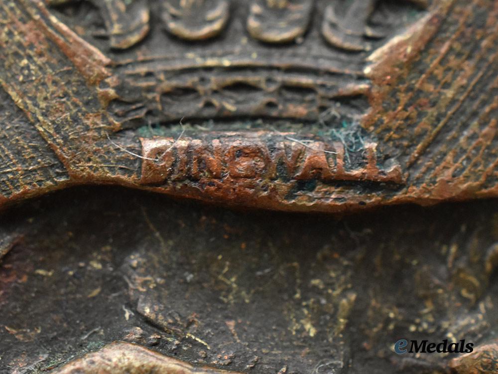 In browning copper, voided, maker marked "DINGWALL" on the reverse, measuring 37 mm (w) x 45 mm (h), both lugs intact, very light contact and surface wear, near extremely fine.