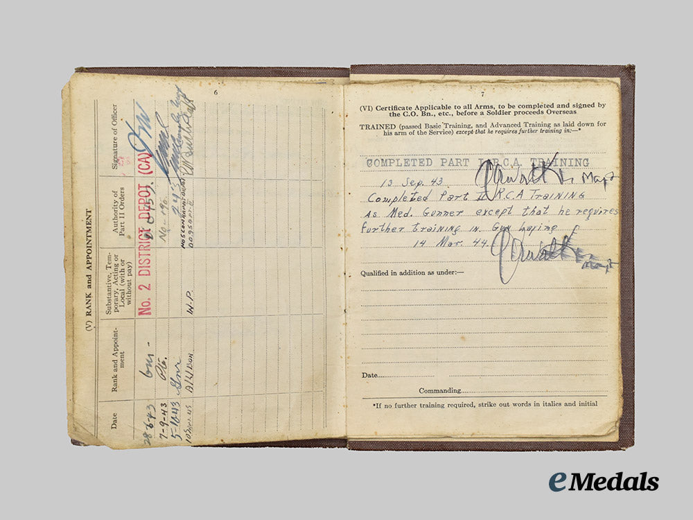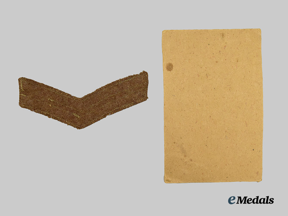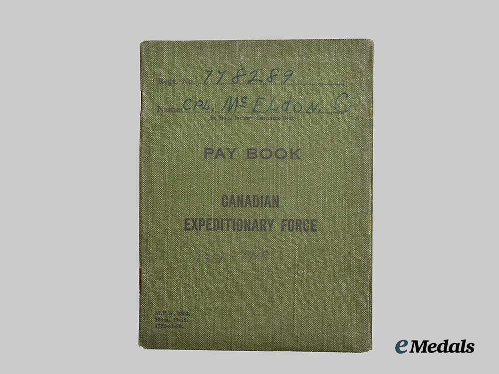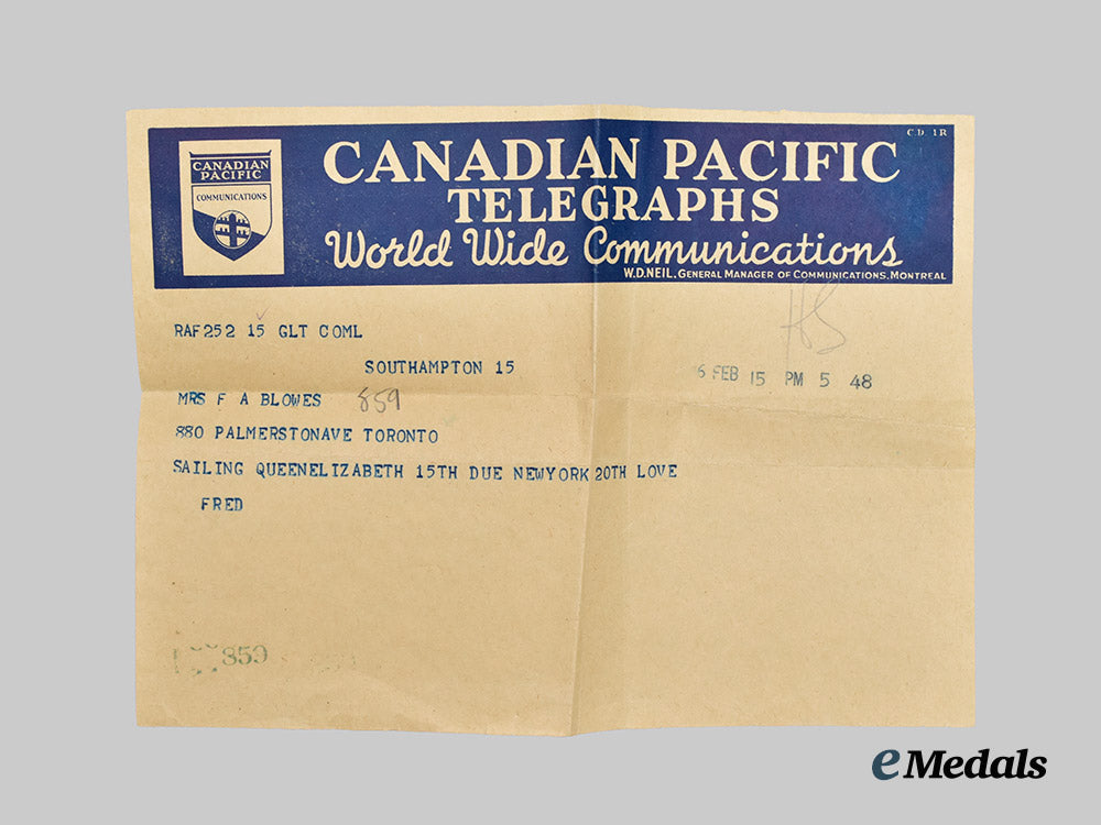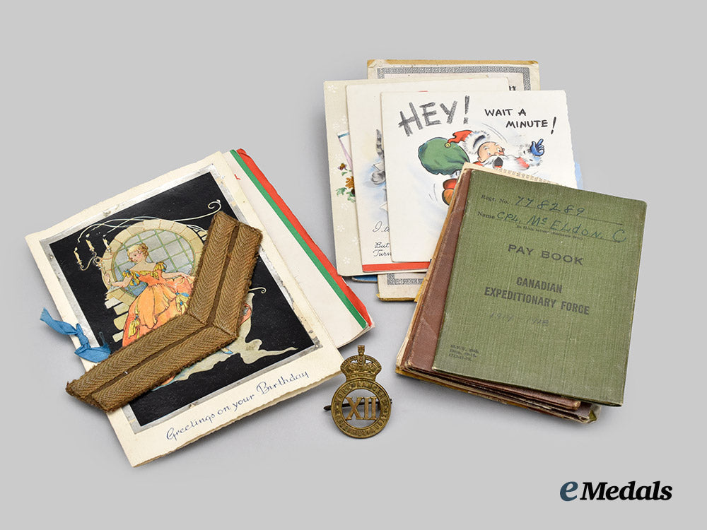Included are a 12th York Rangers cap badge, an Army Corporal's uniform stripes, four pay books, a Canadian Pacific Telegram envelope, a photograph, along with assorted cards, letters and booklets, in various sizes, ranging from near fine to very fine.