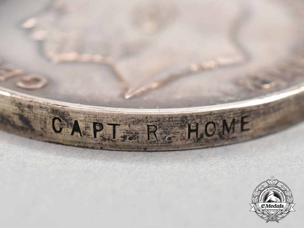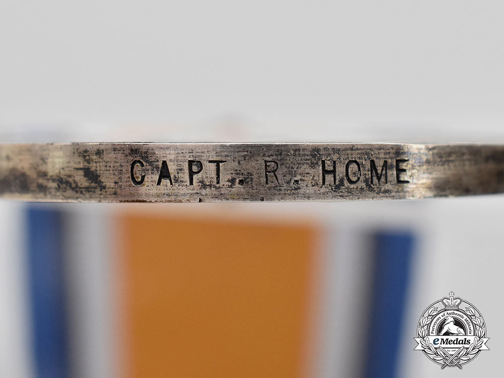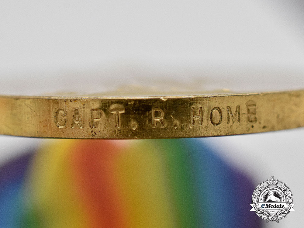 Victory Medal, in bronze gilt, full size, rim impressed CAPT. R. HOME, accompanied by a section of ribbon, very minor wear, in extremely fine condition.