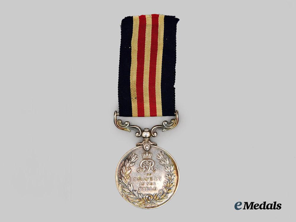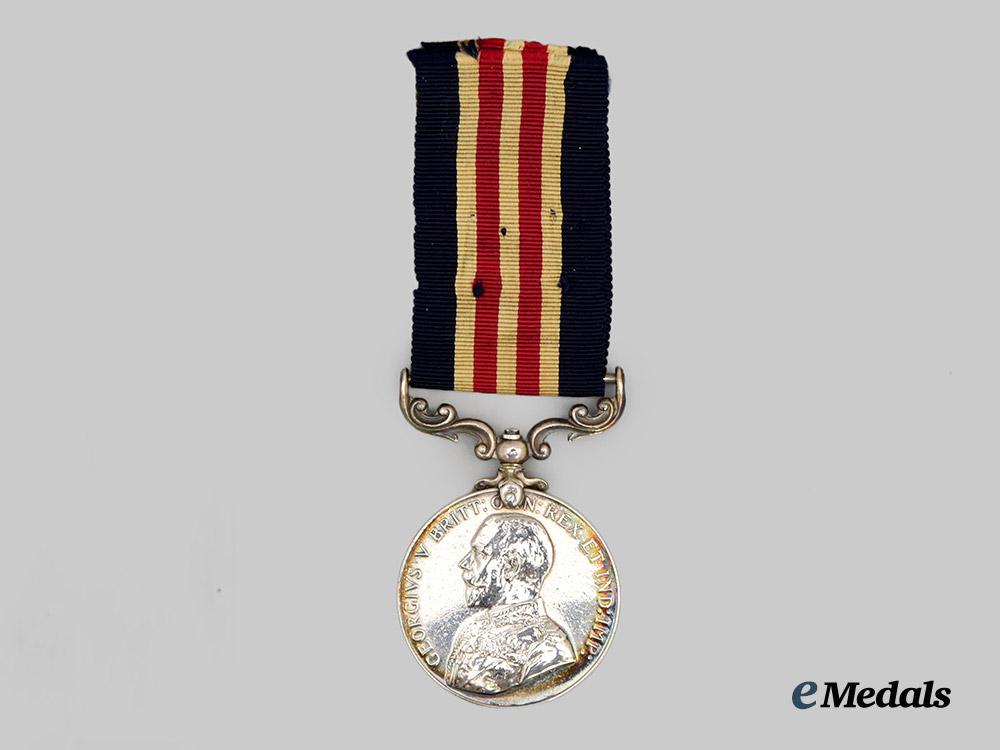 Instituted March 25th, 1916. A circular silver medal, suspended from a single-toe claw attached to the center of the award with a slotted bar, suspended from its period-original ribbon (with evidence of previous collector’s mounting), the obverse depicts the leftward facing effigy of King George V and is circumscribed by his name and title, the reverse is inscribed “For Bravery in the Field” in capital letters, surrounded by a laurel wreath and surmounted by the royal cypher and imperial crown, naming shaved and privately engraved “394 SPR A. MacGregor C.E.” along the edge, measuring 36.3 mm in diameter, weighing 36.13 grams, with pleasant patina from age and wear, in overall better than very fine condition.