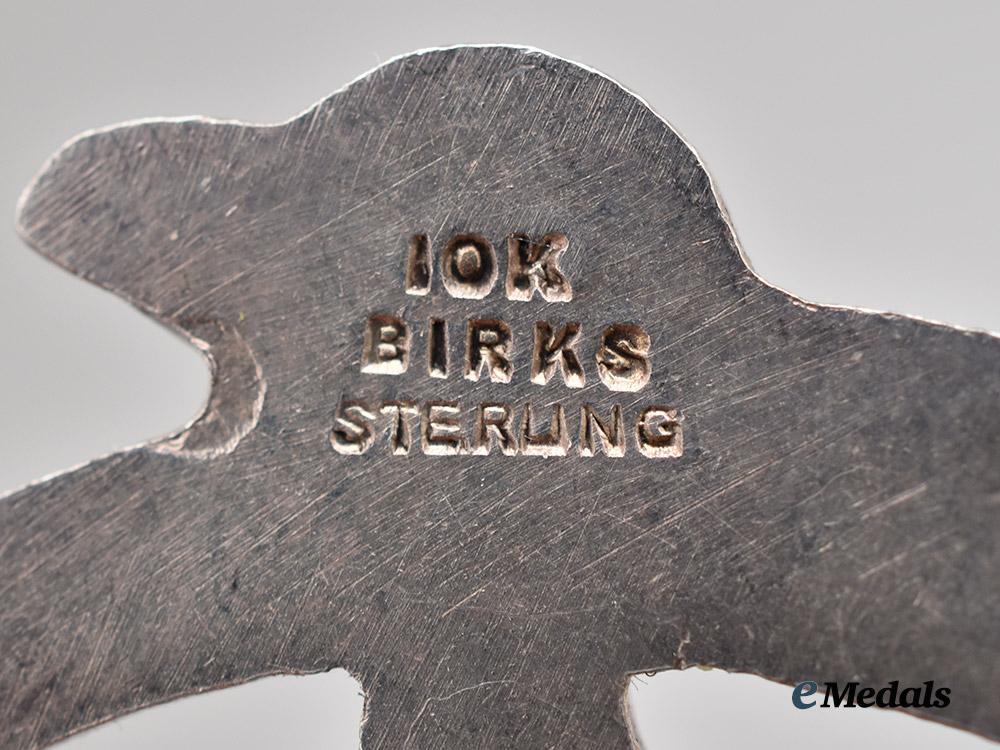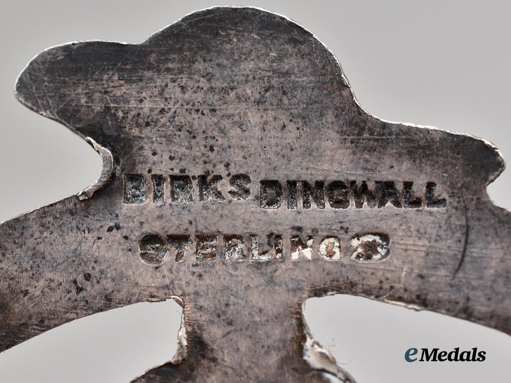 In silver, each collar tab presenting superimposed ‘WLI’ gold pieces over the 106th regiment number, lugs intact on both (one bent), one reverse reads 10K BIRKS STERLING, and the other BIRKS DINGWALL STERLING, measures 28.8 mm (w) x 31.3 mm (h), on has a much darker patina, both in better than very fine condition.
