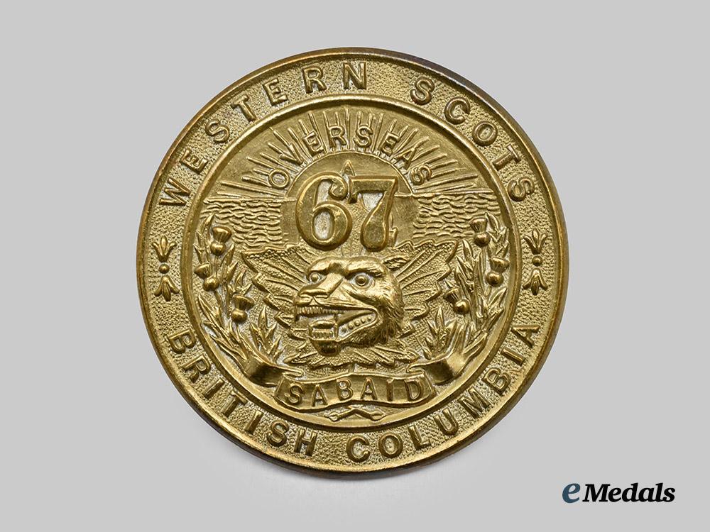 Canada, CEF. First War 67th Infantry Battalion "Western Scots" Glengarry Badge