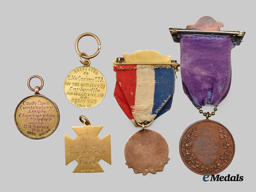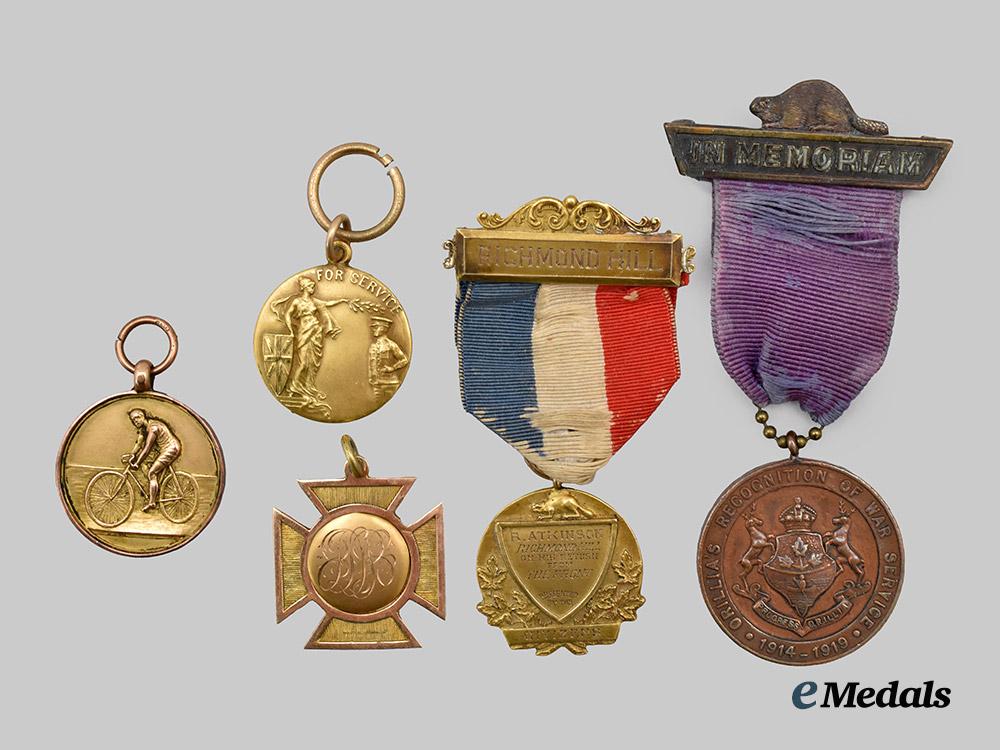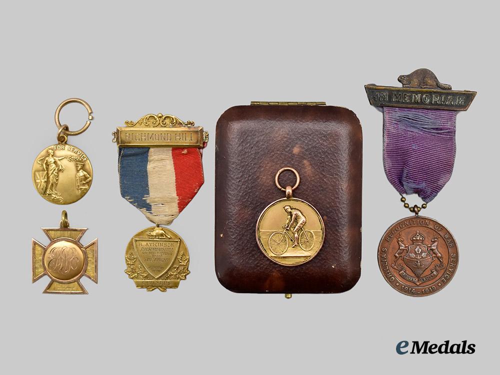 Canada, CEF. Four First War Township Medals for Active Service and One Cycle Championship Medal