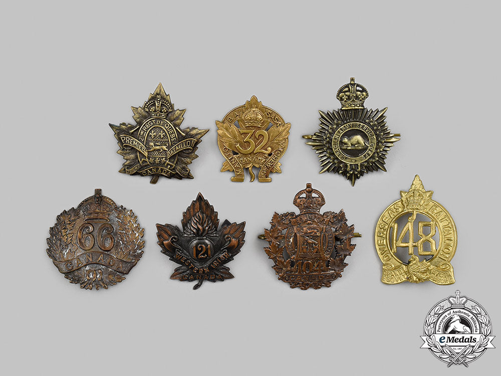 1. 32nd Infantry Battalion "Manitoba and Saskatchewan Regiment" Officer's Collar Badge (in gilt on copper, unmarked, measuring 31.5 mm (w) x 37.2 mm (h), both lugs intact).