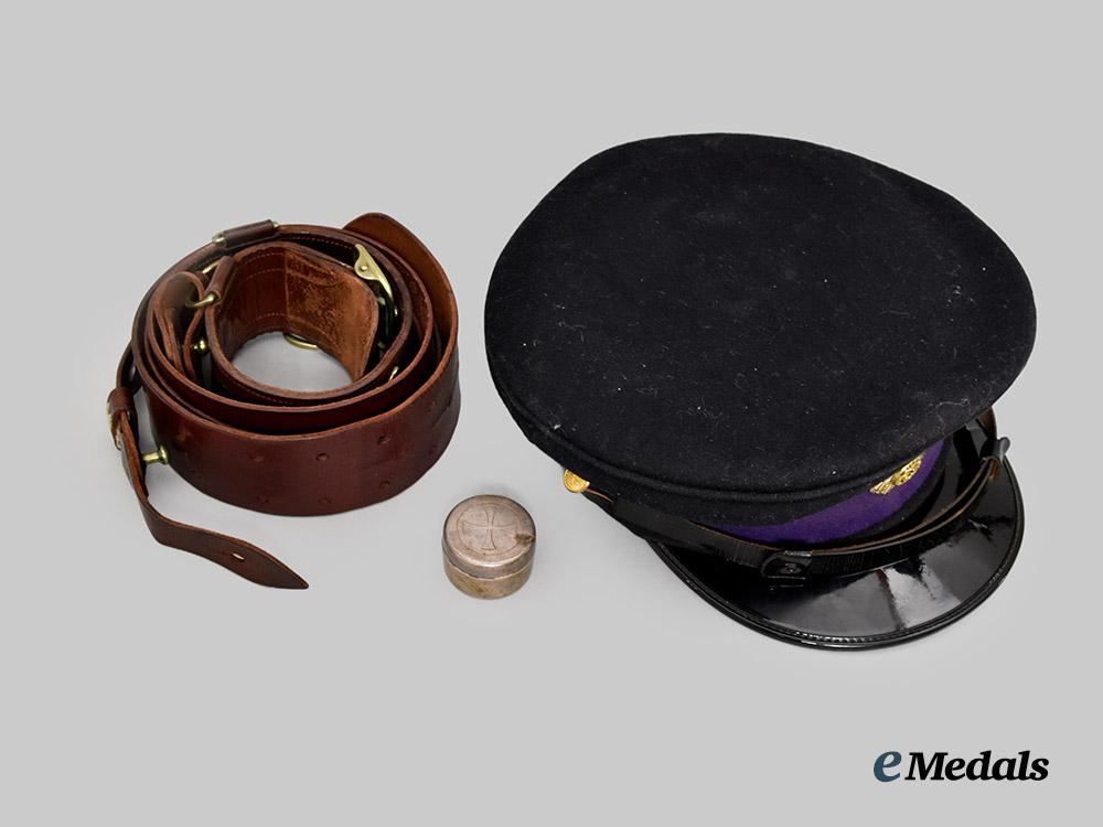 Canada, Commonwealth. A Chaplain Service Officer's Cap, Uniform Belt and Communion Wafer Container