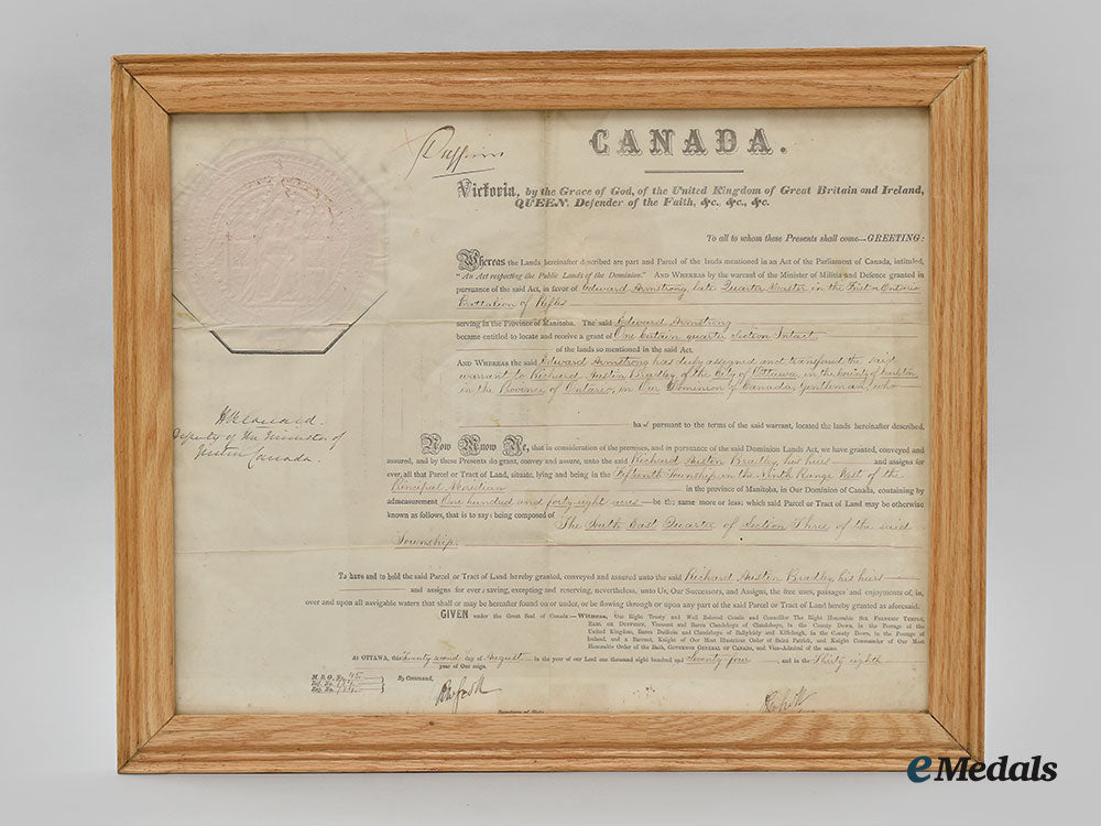 Canada, Commonwealth. A Framed Land Transfer Document To Richard Austin Bradley, 1874