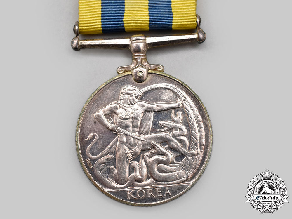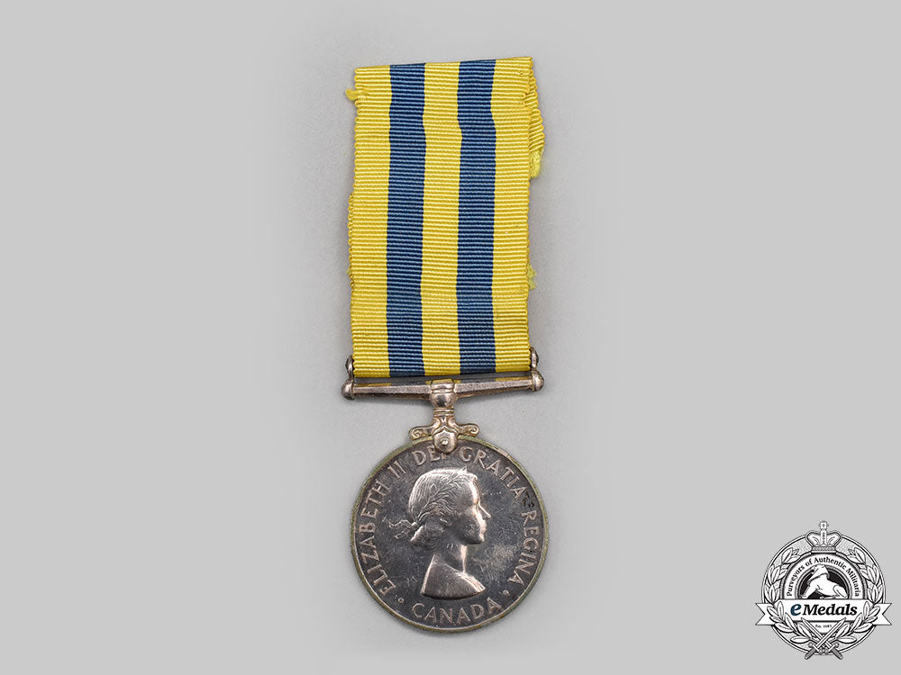 Footnote: The Canadian Korea Medal was instituted in 1951 for service from July 2, 1950 to July 27, 1953. It was awarded to Canadian military personnel for one day on the strength of an army unit in Korea, or 28 days afloat, or one sortie over Korea by a member of the RCAF.