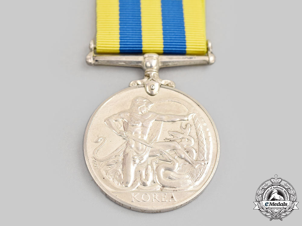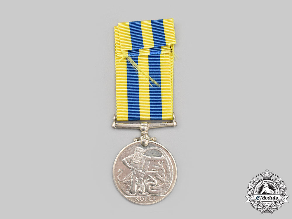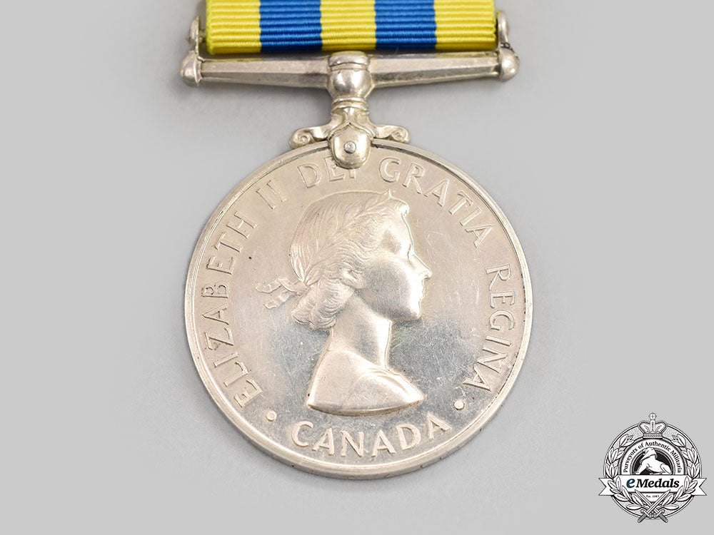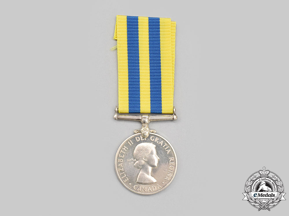 Footnote: The Canadian Korea Medal was instituted in 1951 for service from July 2, 1950 to July 27, 1953. It was awarded to Canadian military personnel for one day on the strength of an army unit in Korea, or 28 days afloat, or one sortie over Korea by a member of the RCAF.
