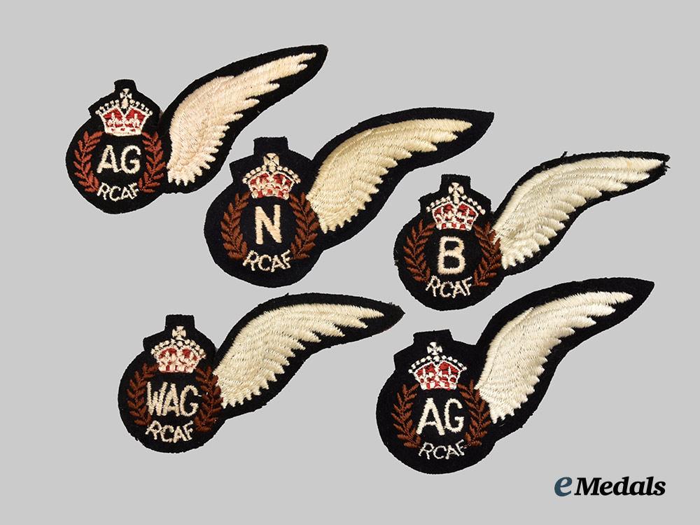 A lot of five Royal Canadian Air Force occupational half-wings, consisting of: